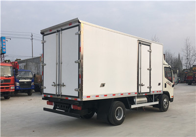 解放虎V冷藏车底盘配置: 解放虎V冷藏车采用宽体可翻转驾驶室,其配备潍柴(国五)130马力发动机,5档变速箱,前桥3吨,后桥6吨,气刹、ABS,7.50R16钢丝胎,3900mm轴距,总质量8280kg,额定载质量3795kg,整备质量4290kg。 厢体配置: 厢体采用聚酯湿法制板工艺和玻璃纤维加强全木厢体框架结构,全封闭聚氨酯板块粘接法;保温性能达到国家A级标准。 厢板材质:内外壁板选用国内优质的2.5mm纳米玻璃钢(不吸光、隔热性好、硬度强、抗氧化);中间保温材料为无空隙填充进口聚氨酯发泡;厢体厚度80mm,门厚度80mm;厢体底部为铝合金花纹板或选平面纳米玻璃钢; 配件:厢体周边铝合金包边,不锈钢包角,不锈钢门锁,防碰胶皮4块,不锈钢门框, 不锈钢合页,箱内节能照明灯; 厢体厚度可选100mm、120mm,内外壁板可选装玻璃钢、彩钢板、不锈钢、铝合金。